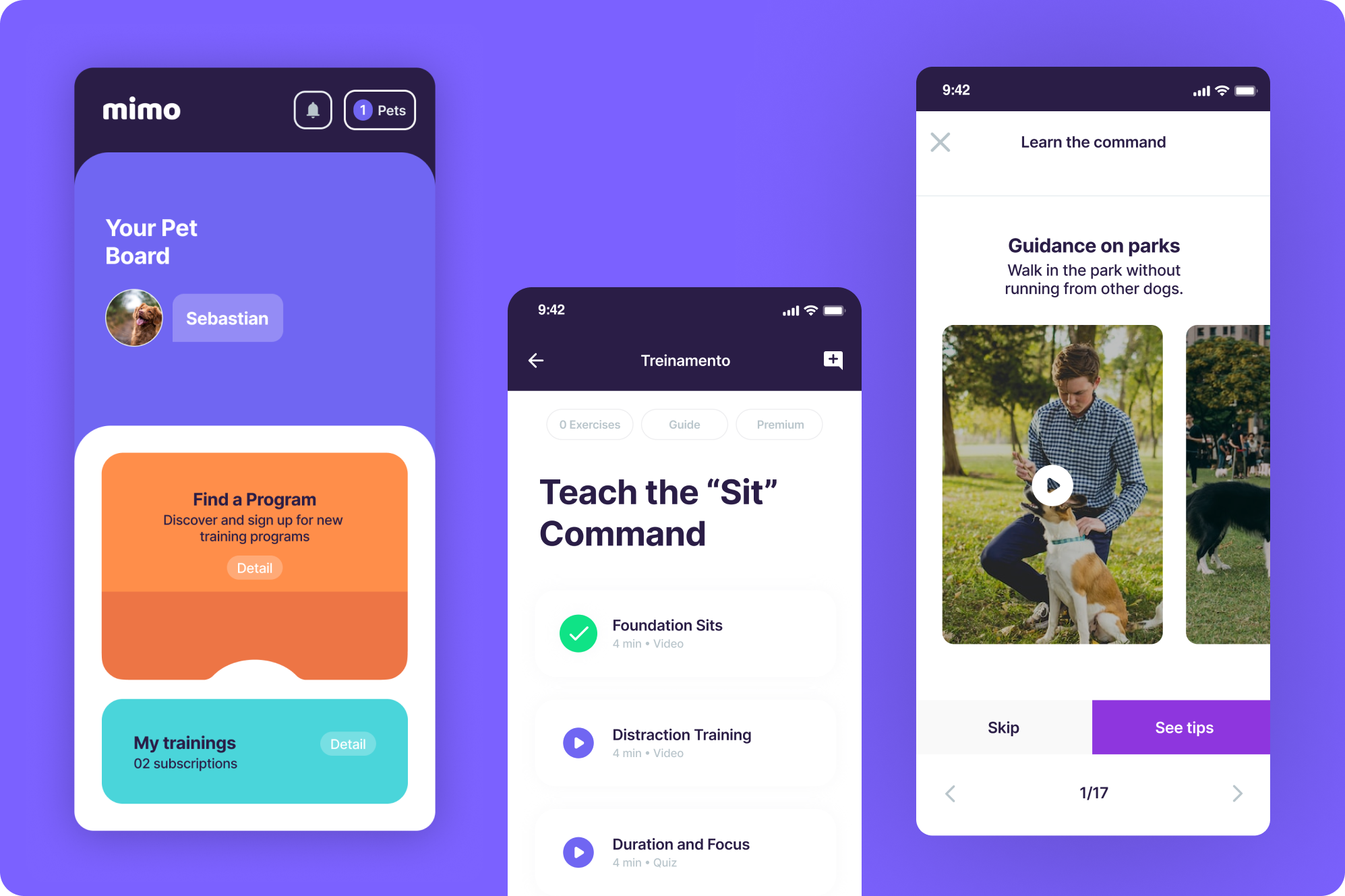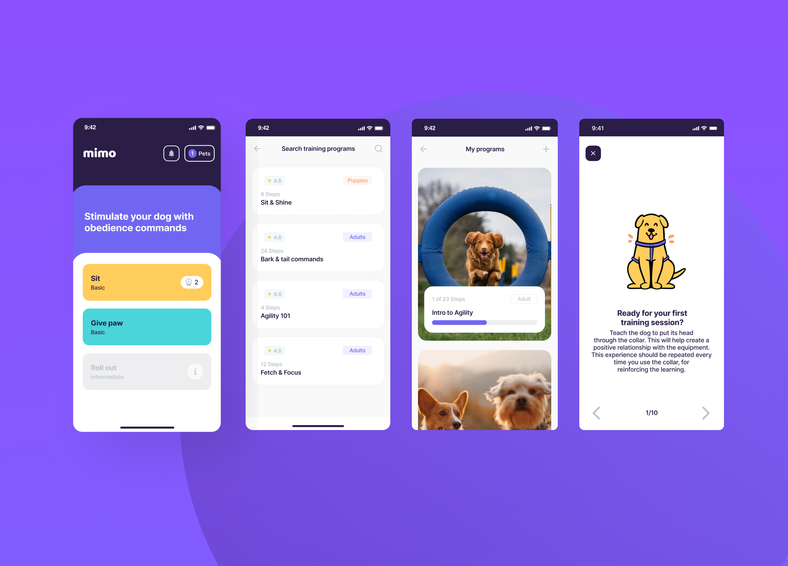 Mimo is a digital tool designed to help pet owners become effective trainers for their dogs. Pet owners often face challenges when introducing their dogs to social spaces. To minimize the stress of introducing your dog to new environments and interactions with humans and other pets, it is essential to train your dog using positive reinforcement and encouraging good behaviors.
