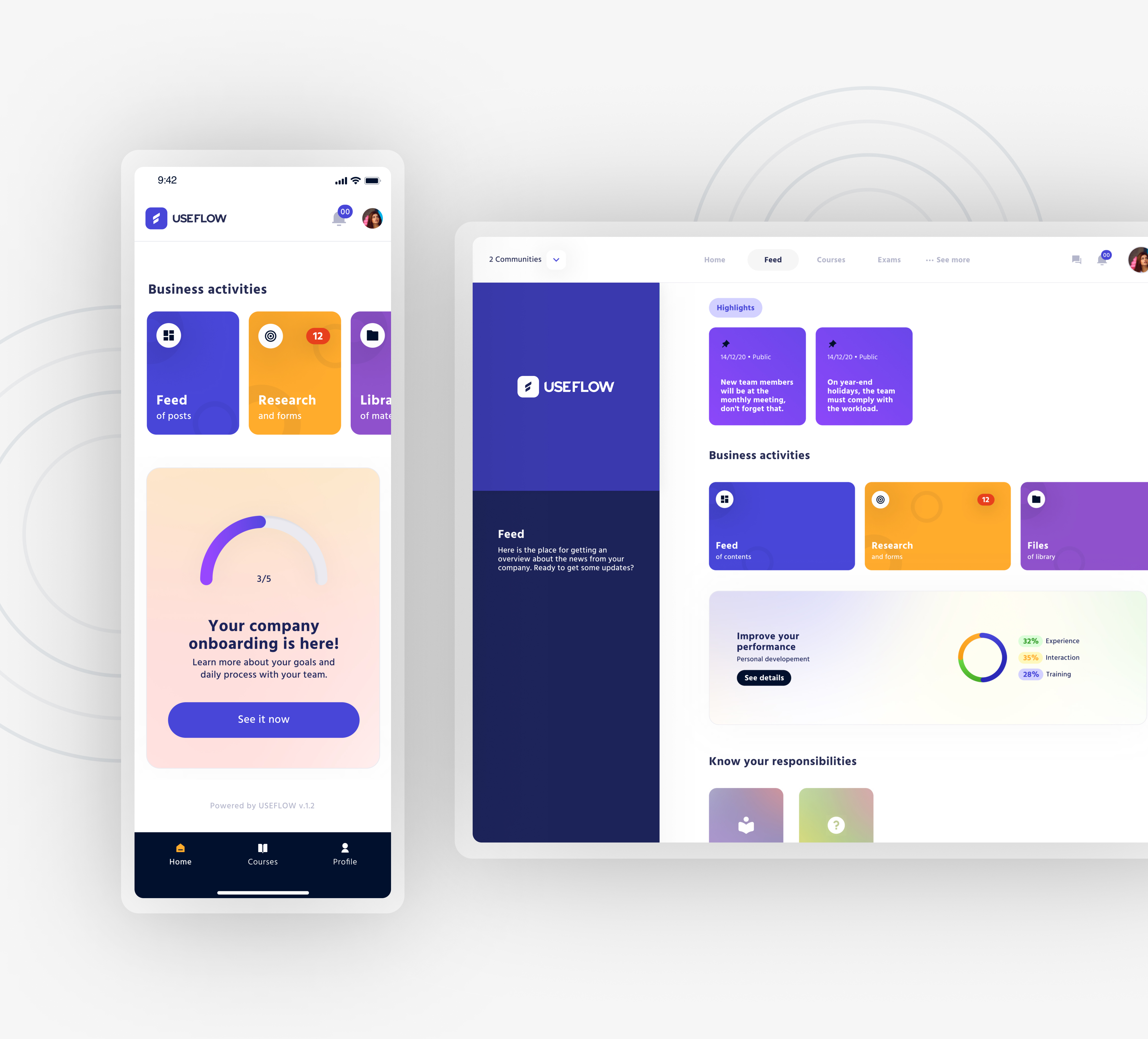 Employees have access to a web-responsive and native app platform to receive content and take necessary actions. Useflow provides a reliable channel for companies to share internal information, such as onboarding materials, event details, internal surveys, training programs and documents.